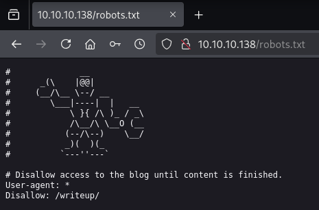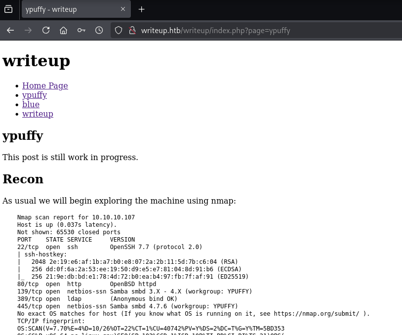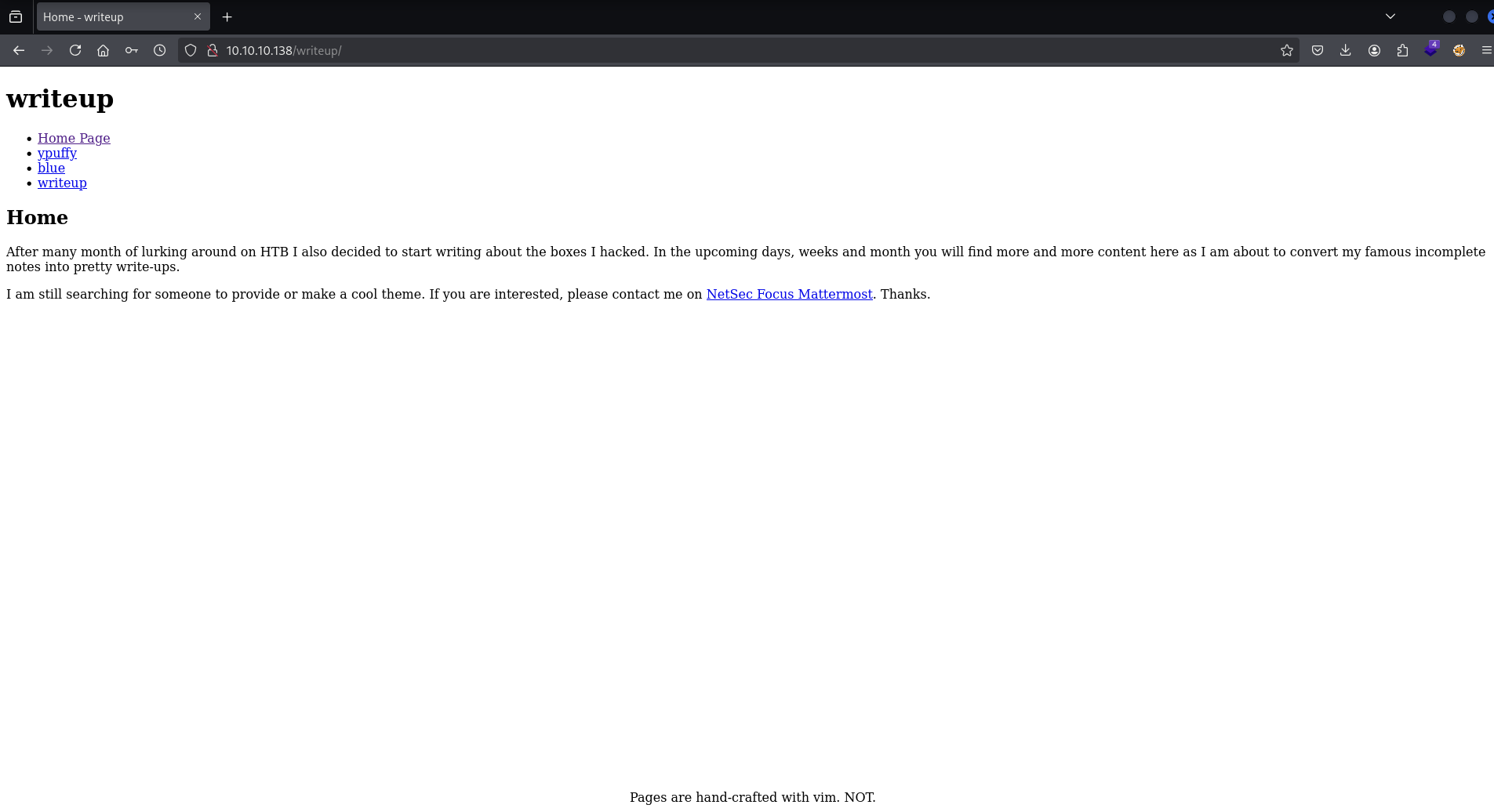 /writeup/index.phppage, for example, has a?pageparameter which might introduce a LFI vulnerability, but I wasn’t able to enumerate possible payloads because my requests after so many failed attempts got blocked.