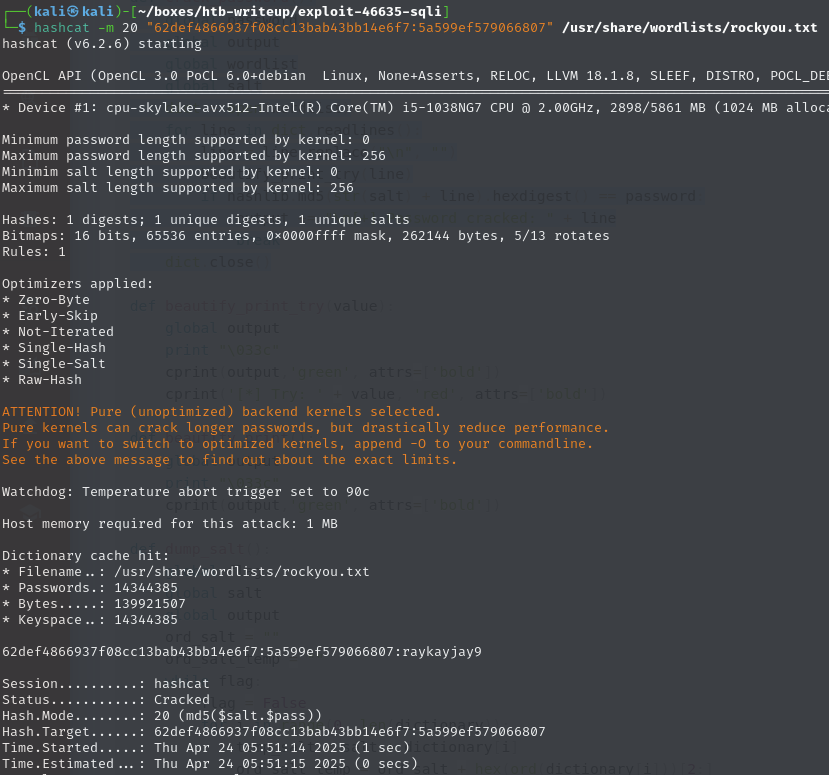 I found an SQLi exploit for version <2.2.10, which gives us a user hash: